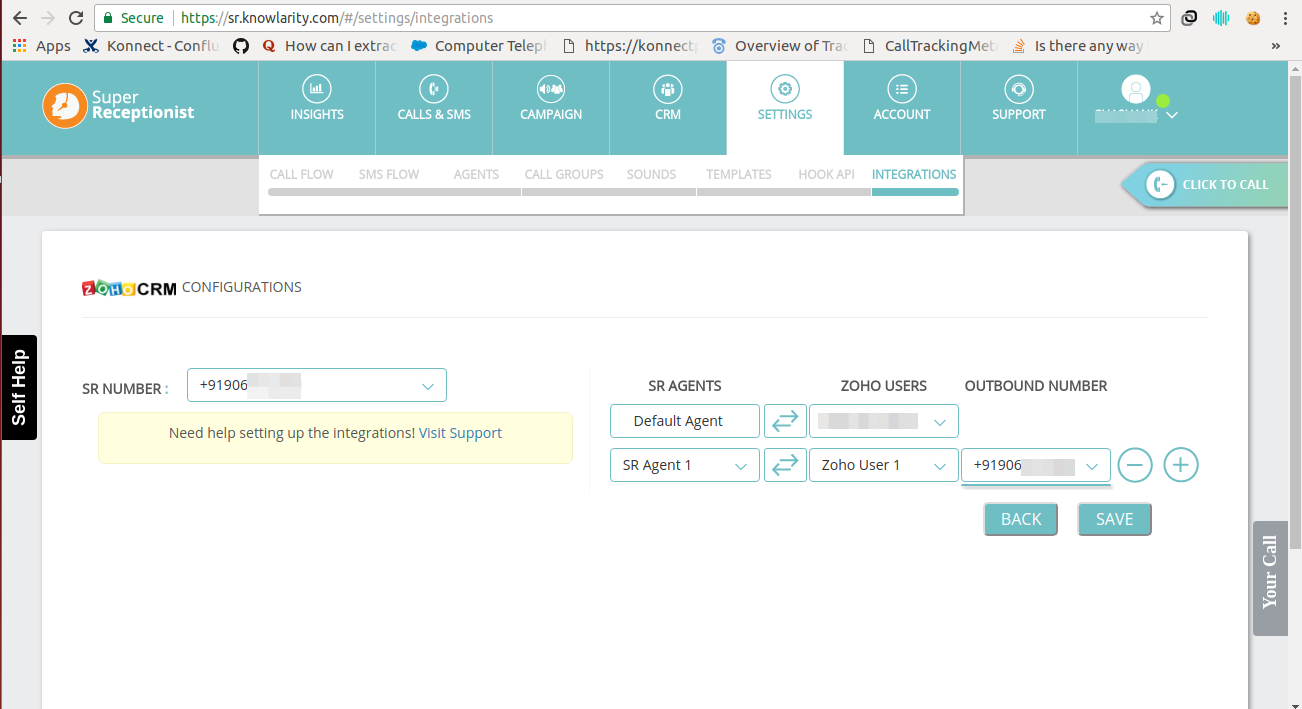 eg: Zoho user 1 is mapped to SR Agent 1. So Zoho User 1 will get the option to make click to call.